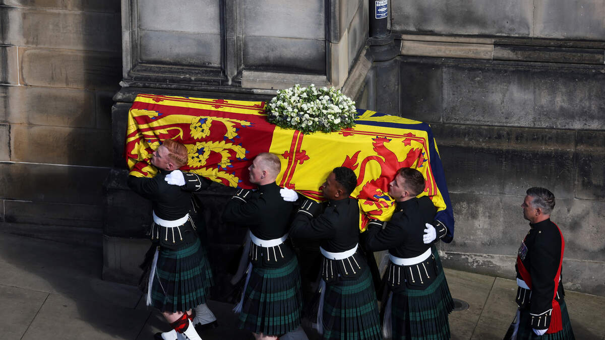 (Edinburgh) -- Queen Elizabeth is now lying at rest in Scotland. King Charles The Third led a procession from the Palace of Holyroodhouse to St. Giles' Cathedral in Edinburgh. The new Monarch was joined by his siblings while the Queen Consort followed behind in a car.